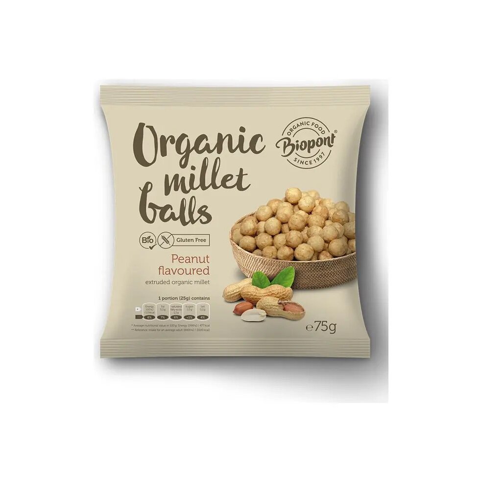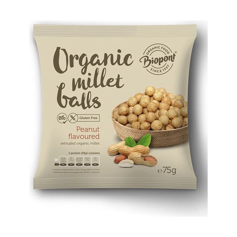 Chrupki jaglane BIOPONT to zdrowa i smaczna przekąska łącząca wartości odżywcze prosa z intensywnym smakiem prażonych orzeszków ziemnych. Idealne dla osób poszukujących bezglutenowej alternatywy dla tradycyjnych przekąsek słonych, oferują naturalny smak i satysfakcjonujący chrupot.