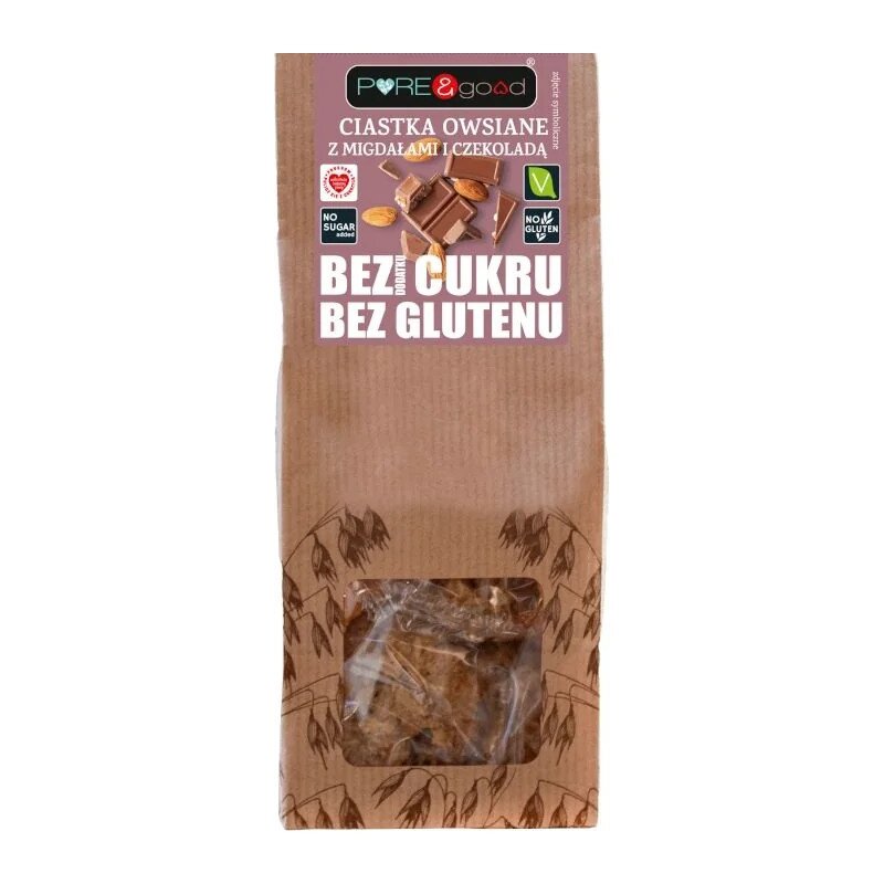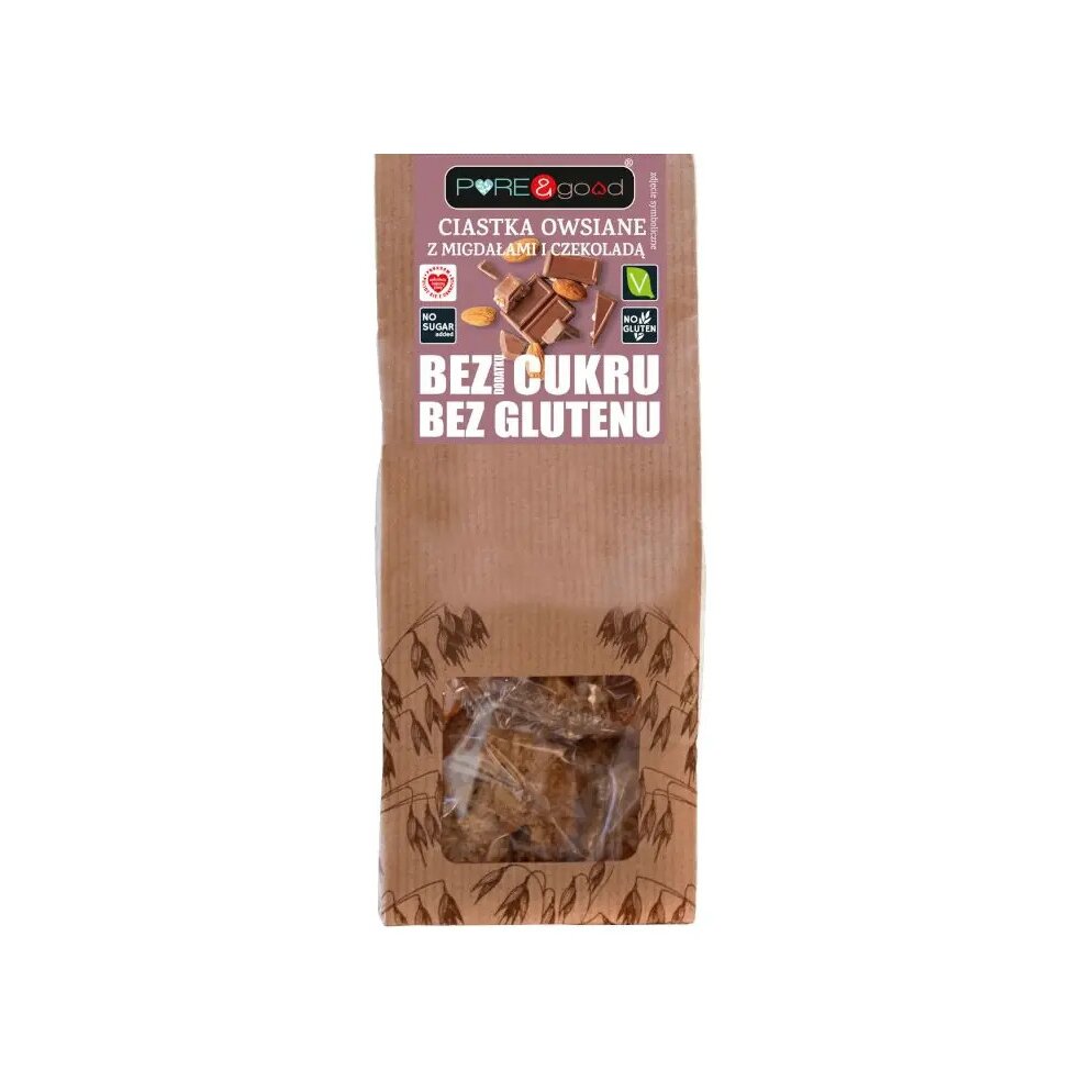 CIASTKA OWSIANE Z MIGDAŁAMI I CZEKOLADĄ BEZ DODATKU CUKRÓW BEZGLUTENOWE 150 g – PURE&GOOD