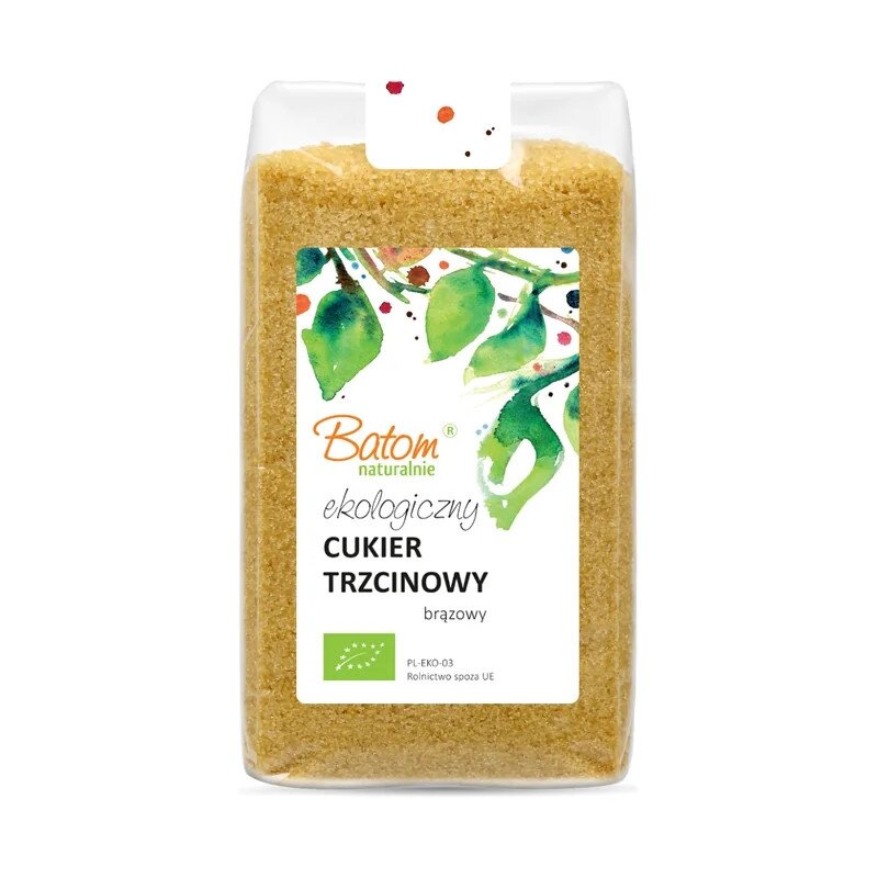 Naturalny cukier trzcinowy brązowy BIO 500g marki BATOM – nierafinowany słodzik o bogatym smaku i wartościach odżywczych.