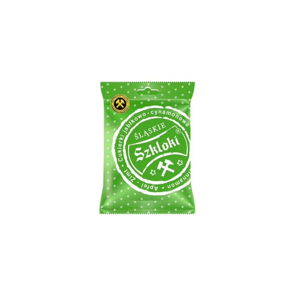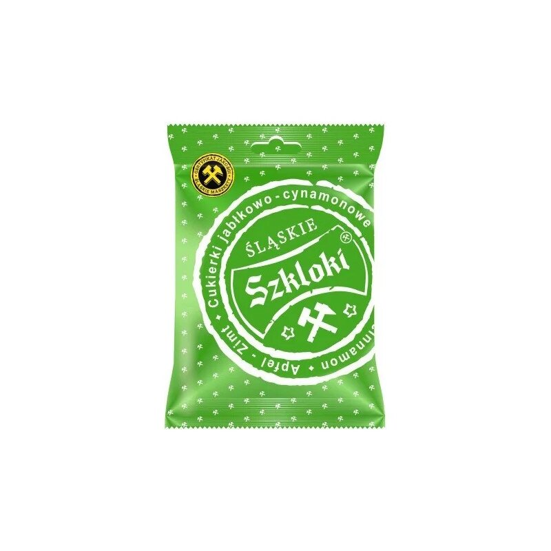 Tradycyjne śląskie cukierki szkloki o smaku jabłka i cynamonu. Naturalne składniki w 80g opakowaniu od VISA BELL.