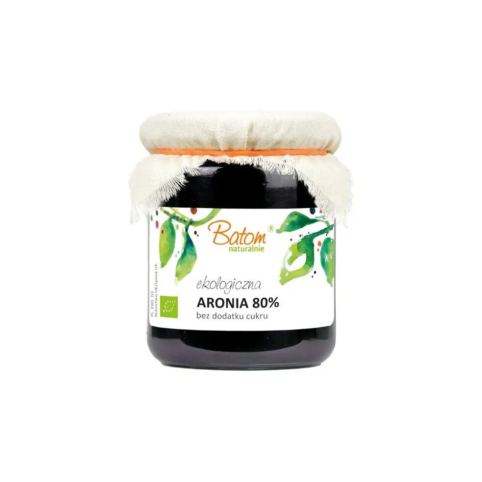 Naturalny dżem aroniowy BATOM BIO to wyjątkowy produkt stworzony z 80% świeżych owoców aronii, słodzony wyłącznie naturalnym sokiem jabłkowym. Ten ekologiczny dżem stanowi doskonałą alternatywę dla tradycyjnych przetworów, dostarczając organizmowi cennych antyoksydantów i witamin bez dodatku cukru białego.
