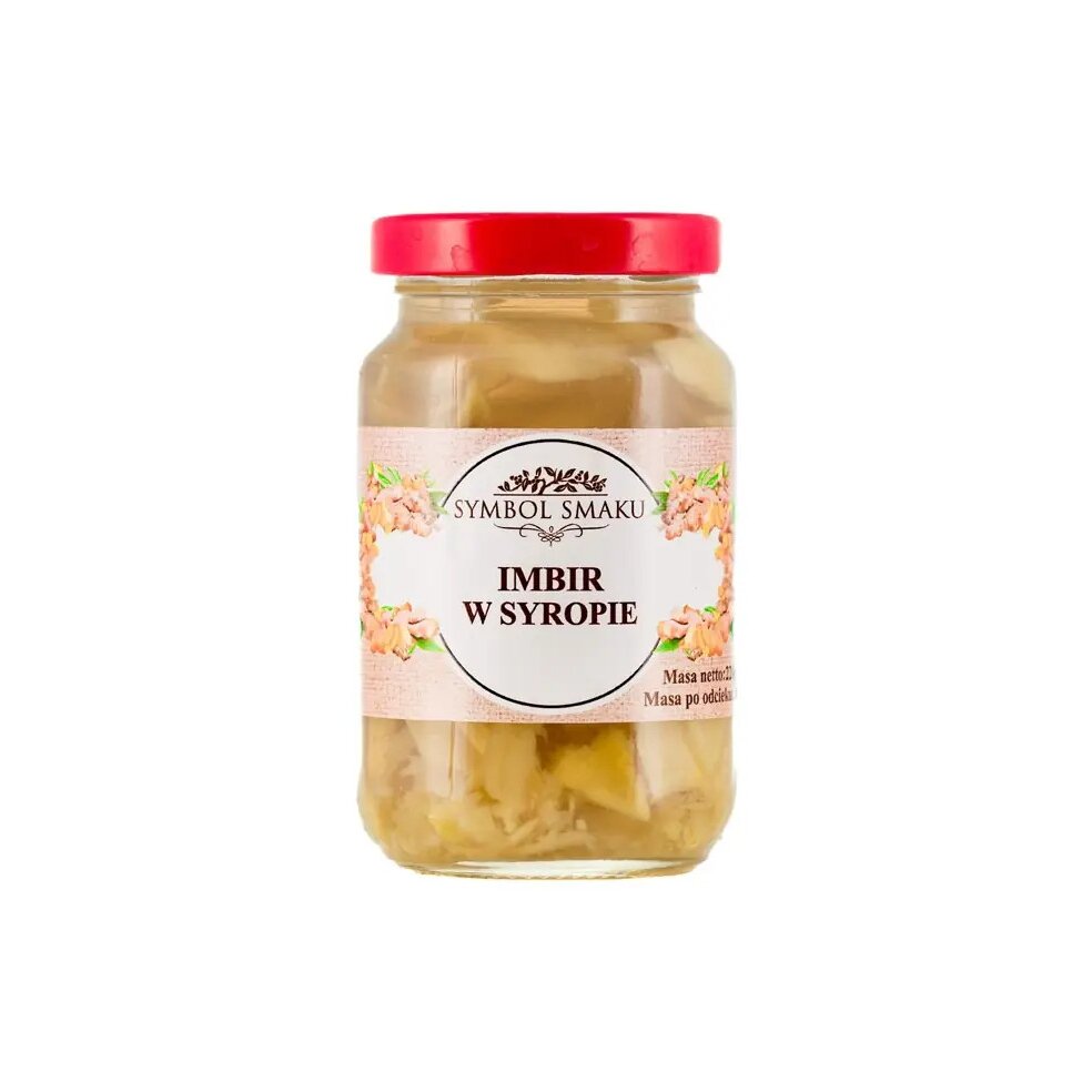 Imbir w syropie SYMBOL SMAKU to naturalny przysmak o intensywnym smaku, idealny do herbaty, deserów i jako dodatek do potraw orientalnych.