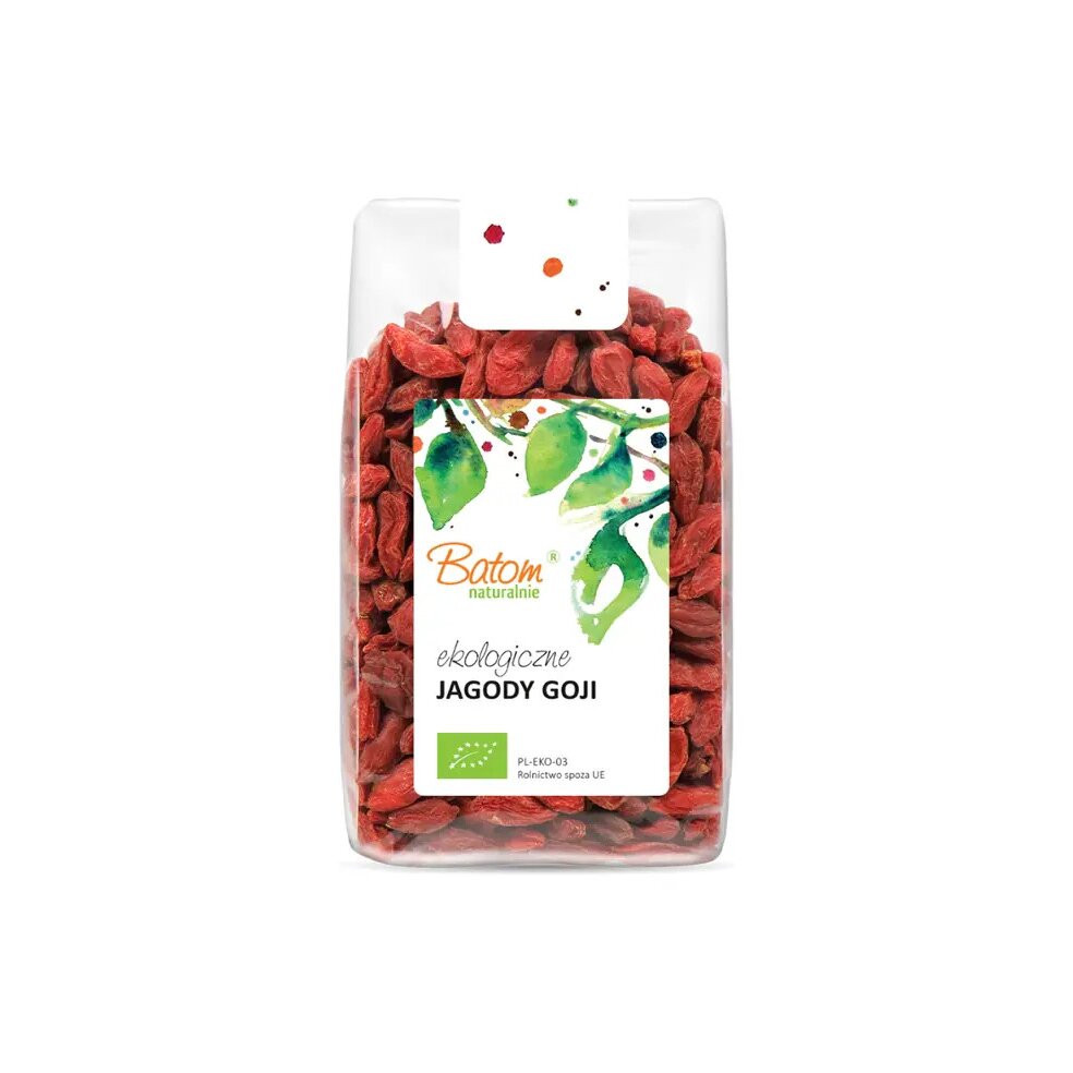 Suszone jagody Goji BIO 250g BATOM to naturalne superfood bogate w antyoksydanty, witaminy i minerały wspierające odporność i witalność organizmu.