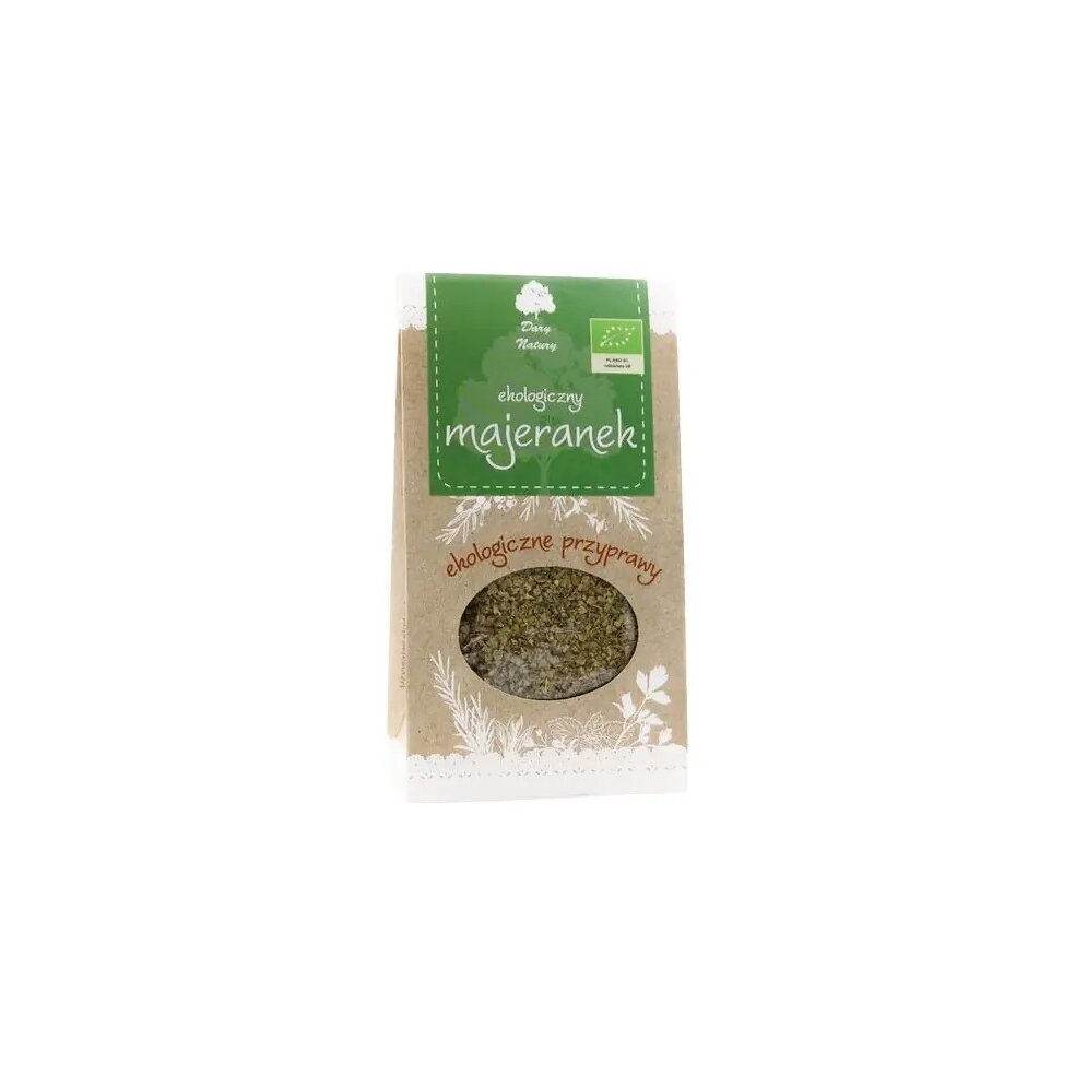 Majeranek suszony z upraw ekologicznych (Origanum majorana) 100%. Produkt pochodzący z certyfikowanych upraw biologicznych.