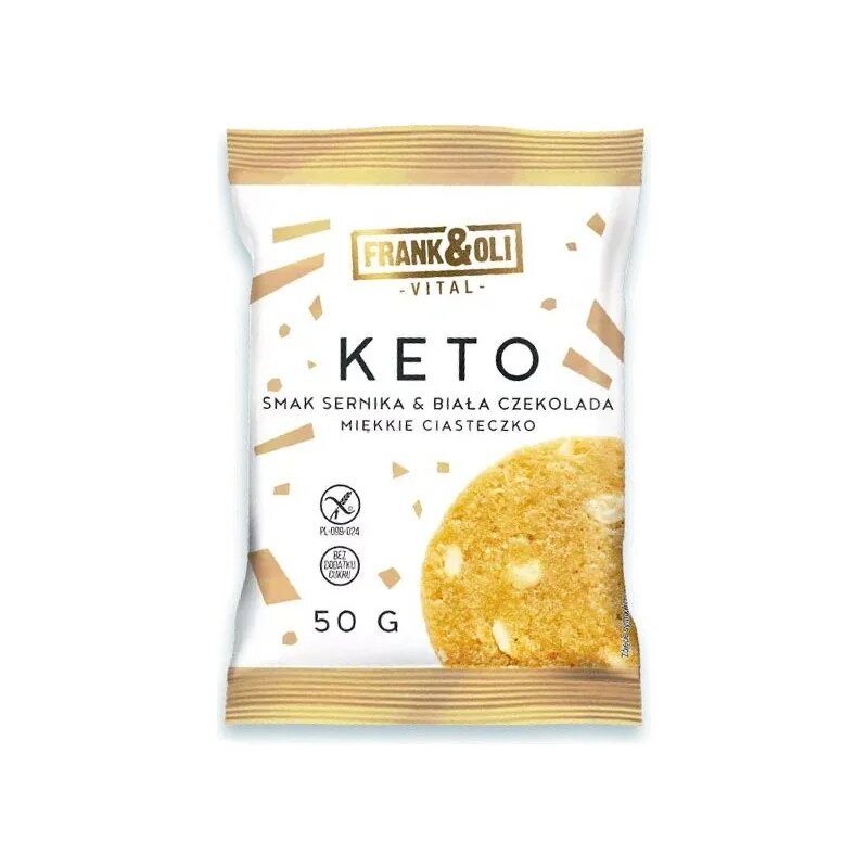Miękkie KETO ciasteczko Sernik z białą czekoladą bez cukru 50g FRANK&OLI