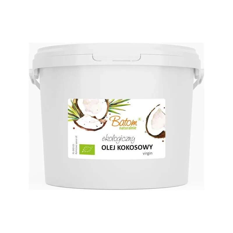 Olej kokosowy Virgin BATOM BIO to naturalny, nierafinowany olej tłoczony na zimno z najwyższej jakości orzechów kokosowych. Ten uniwersalny produkt w praktycznym opakowaniu 10l doskonale sprawdzi się zarówno w kuchni, jak i w codziennej pielęgnacji ciała i włosów.
