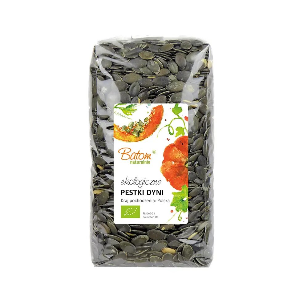 Ekologiczne pestki dyni ciemnozielone 1kg od BATOM BIO z Polski – naturalne źródło białka, cynku i zdrowych tłuszczów.