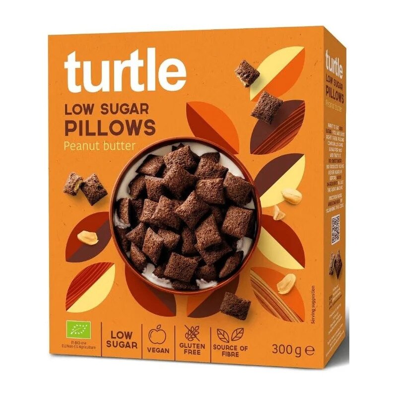 PODUSZKI ZBOŻOWE Z KREMEM Z ORZESZKÓW ZIEMNYCH NISKA ZAWARTOŚĆ CUKRÓW BEZGLUTENOWE BIO 300 g – TURTLE