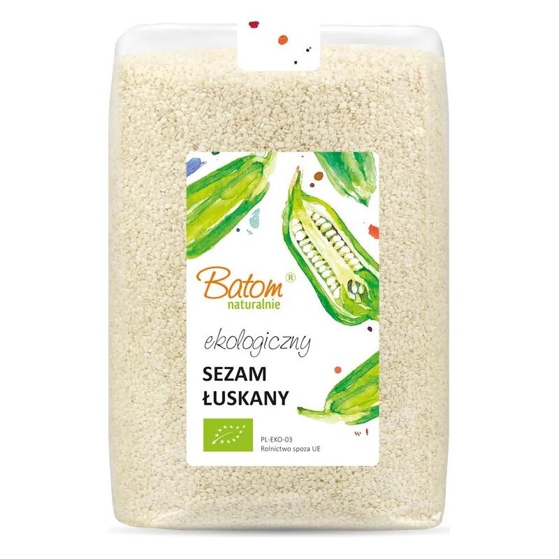 Ekologiczny sezam łuskany BATOM BIO to naturalne źródło białka, wapnia i zdrowych tłuszczów. Idealny do codziennej diety i przygotowywania tahini.