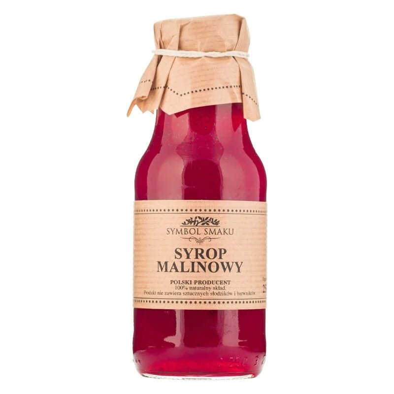 Naturalny syrop malinowy SYMBOL SMAKU to intensywny smak lata w butelce – idealny do deserów, napojów i wypieków.